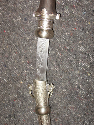 The above photo shows a picture of a lion on the knife; unfortunately it is upside down. This is a signifying mark, which is unique to the maker of the dagger.